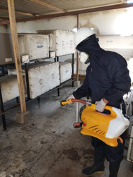 La desinfección es el procedimiento para eliminar Virus , bacterias, protozoos, entre otros. Consiste en la aplicación de un Desinfectante a base de Amonio cuaternario de quinta generación, como el DMQ, con el objetivo de prevenir la proliferación de microorganismos.